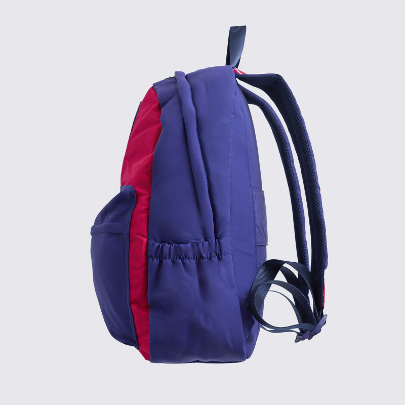 This unisex backpack features a striking color-blocked design crafted from durable textured ripstop fabric, ensuring it withstands the rigors of daily use while maintaining a stylish appearance.