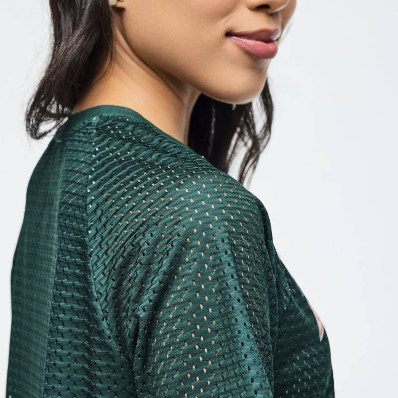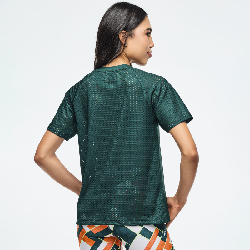 Crafted from a lightweight open hole mesh fabric, this top is engineered to provide breathability and moisture-wicking properties. Composed of 80% polyester and 20% elastane, it offers a soft touch against the skin while maintaining durability and stretch. This unique fabric composition allows for a weightless feel, making it a fan favorite among those who prioritize both performance and style.