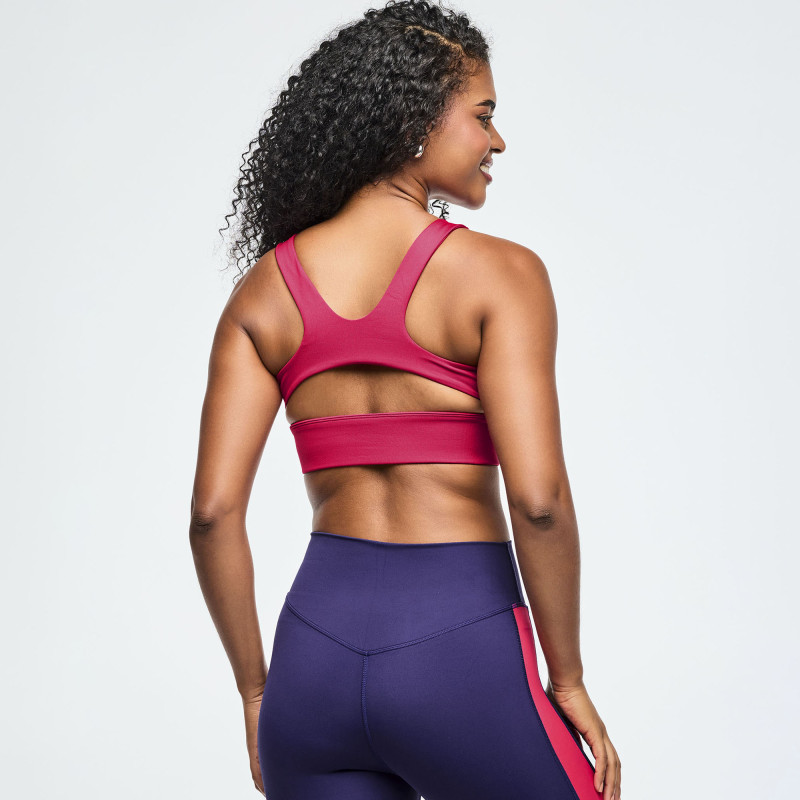 The medium coverage and moderate compression provide just the right amount of support, allowing you to focus on your performance without distractions. The wide waistband, adorned with Zumba branded artwork and encased elastic, ensures a secure fit that stays in place during your most intense activities. With its new and improved fit, this bra is designed to flatter all body types, making it a fan favorite among active women.