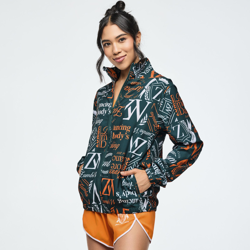 What truly sets this jacket apart is the Zumba-exclusive all-over print, which adds a vibrant touch to your active wardrobe. This design not only reflects your dynamic personality but also inspires confidence as you engage in your favorite activities. Whether you're heading to a dance class or enjoying a casual day out, this jacket is the perfect companion, combining practicality with a bold sense of style.