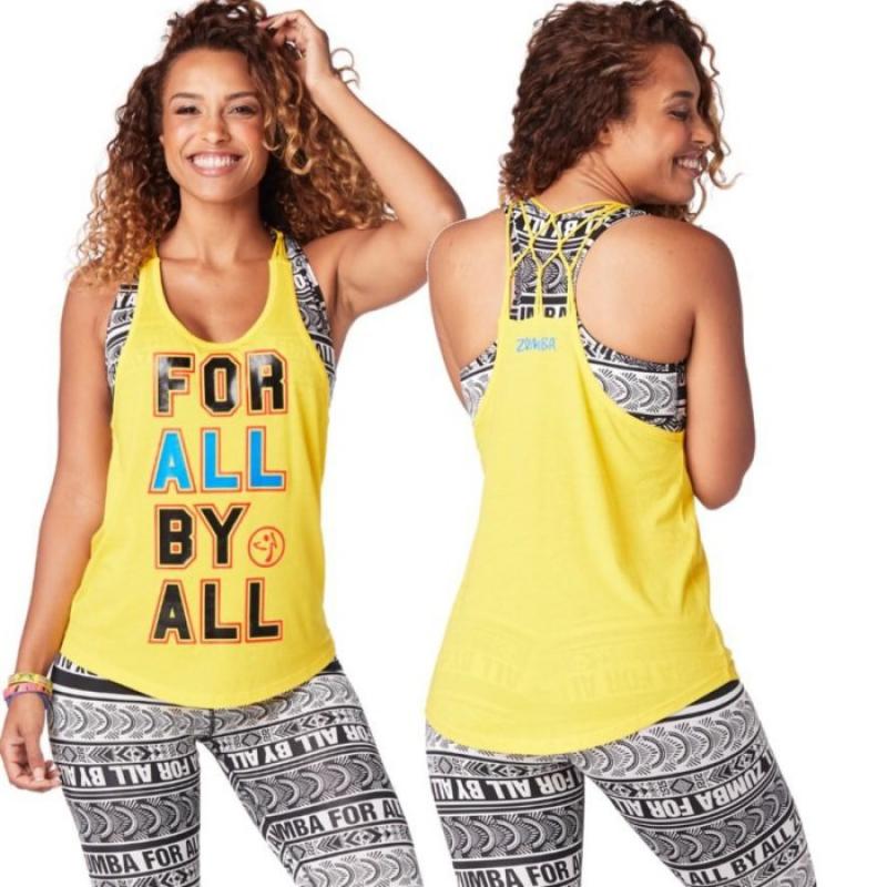 Join our commUNITY of dance lovers in the Zumba® For All Tank! With a unique knitted detail on the back and bold graphic on the front, this tank is ready for the studio and the street.